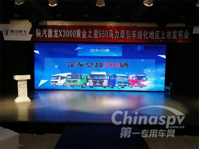 “喜迎雙11、共享新物流”。11月11日,陜汽重卡在綏化地區(qū)聯(lián)合綏化市駿博汽車銷售有限公司,并舉辦了陜汽德龍X3000黃金之星550馬力牽引車上市發(fā)布會。陜重汽哈爾濱辦事處區(qū)域總經(jīng)理李明和牽引車經(jīng)理王成,與綏化市駿博汽車銷售有限公司羅家玥、黃金產(chǎn)業(yè)鏈代表及綏化區(qū)域運(yùn)輸公司老板及車主等一百余人參加此次盛典。