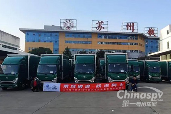 繼6月100臺上汽輕卡EC101純電動郵政車批交付后,11月9日,上汽輕卡在蘇州再次向中國郵政批量交付20臺C100國六車型。