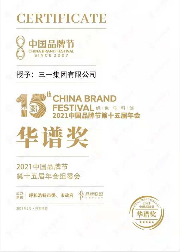 再度上榜!三一集團榮膺2021年中國品牌節(jié)“華譜獎”