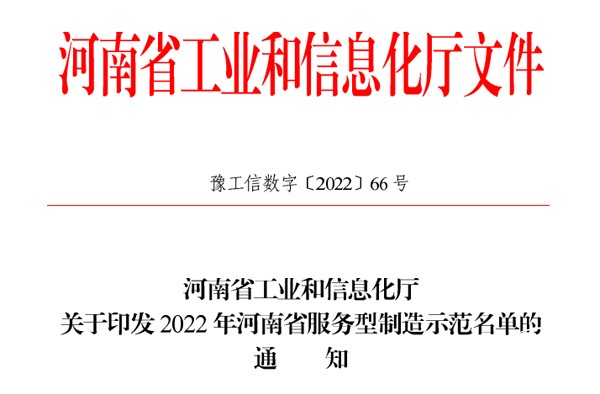 宇通重工榮獲2022年河南省服務(wù)型制造示范企業(yè)