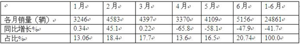 ---6月銷量5156輛,創(chuàng)各月銷量新高,同比下滑47.9%,市場占比20.74%。