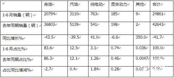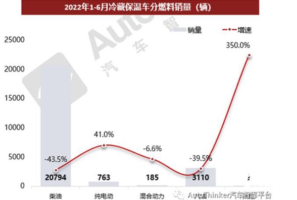上表說明,按搭載的動力種類劃分2022年上半年冷藏車銷量,其特征是: