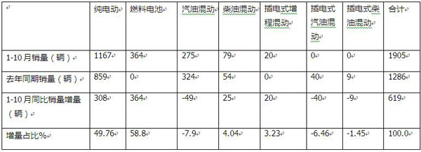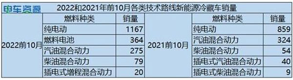 上表可見,在今年1-10月各種技術(shù)路線的新能源冷藏車銷量中: