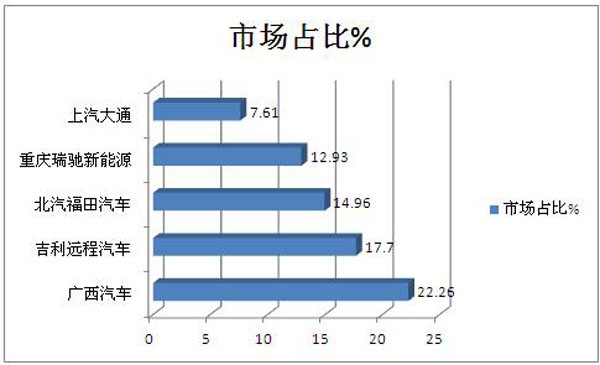 ---北汽福田銷售285輛,同比暴漲3971.42%,領(lǐng)漲各企業(yè),市場占比14.96%,居第三;