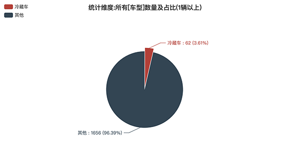 第366批新車產(chǎn)品公示中的1718輛產(chǎn)品中,冷藏車(62輛,占比3.61%)。