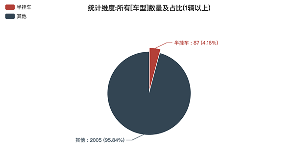 第367批新車產(chǎn)品公示中的2092輛產(chǎn)品中,半掛車(87輛,占比4.16%)。