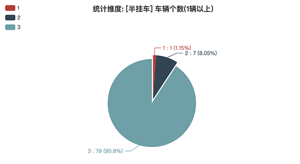 本次公告中的87款半掛車中,1軸(1輛,占比1.15%)、2軸(7輛,占比8.05%)、3(79輛,占比90.8%)。