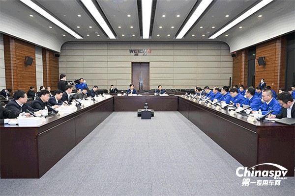 2023年2月19日上午,煙臺市人民政府與濰柴集團在濰坊召開合作對接會。煙臺市委副書記、市長鄭德雁,山東重工集團黨委書記、董事長,濰柴集團董事長譚旭光一同參觀調(diào)研了濰柴工業(yè)園并召開聯(lián)合座談會。煙臺市政府黨組成員張志新及相關(guān)部門主要負(fù)責(zé)同志陪同調(diào)研。
