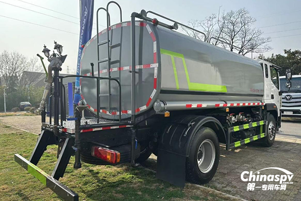 現(xiàn)場(chǎng)展示的歐航環(huán)衛(wèi)清洗車(chē)上裝罐體采用加厚優(yōu)質(zhì)鋼板制作,內(nèi)部采用環(huán)氧樹(shù)脂防腐處理,高效防銹蝕,經(jīng)久耐用。車(chē)輛前兩沖鴨嘴,扇形沖洗,沖洗路面寬度超過(guò)10 米,中對(duì)沖,能夠滿(mǎn)足護(hù)欄清晰、綠化帶灌溉等作業(yè)需求,后灑水嘴,沖洗路面寬度可覆蓋6 條車(chē)道。同時(shí),該產(chǎn)品還可選裝360°旋轉(zhuǎn)后置水炮,更好的滿(mǎn)足環(huán)衛(wèi)作業(yè)需求。豐富的上裝配置使得整車(chē)不僅具有路面養(yǎng)護(hù)、路面沖洗、保持道路濕潤(rùn)、降低灰塵的功能,亦可在工地、廠區(qū)、煤場(chǎng)等區(qū)域降塵灑水,還可以作為緊急消防水車(chē)使用。