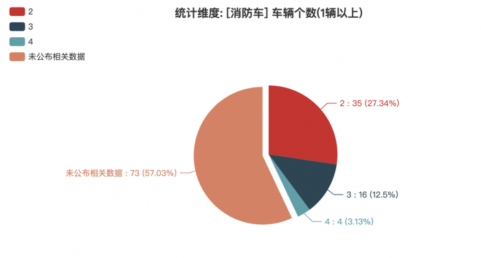 本次公告中的128款消防車中,2軸(35輛,占比27.34%)、3軸(16輛,占比12.5%)、4軸(4輛,占比3.12%)、未公布相關數(shù)據(jù)(73輛,占比57.03%)。