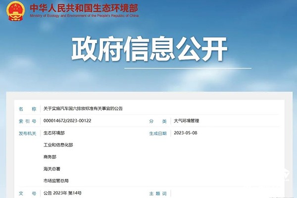 2023年5月9日,生態(tài)環(huán)境部、工業(yè)和信息化部、商務(wù)部、海關(guān)總署和市場(chǎng)監(jiān)管總局等五部門(mén)聯(lián)合發(fā)布《關(guān)于實(shí)施汽車(chē)國(guó)六排放標(biāo)準(zhǔn)有關(guān)事宜的公告》,公告顯示,自2023年7月1日起,全國(guó)范圍全面實(shí)施國(guó)六排放標(biāo)準(zhǔn)6b階段,禁止生產(chǎn)、進(jìn)口、銷(xiāo)售不符合國(guó)六排放標(biāo)準(zhǔn)6b階段的汽車(chē)。