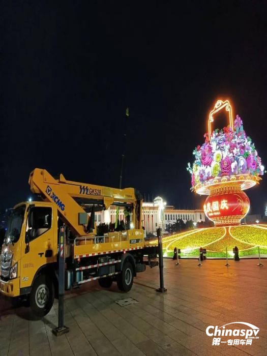 【保障國慶天安門廣場花籃搭建工作的歐馬可高空作業(yè)車】