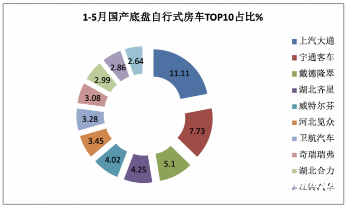 5月國產(chǎn)底盤自行式房車:同比增55%環(huán)比降10.3%,大通、宇通分別奪得冠亞軍