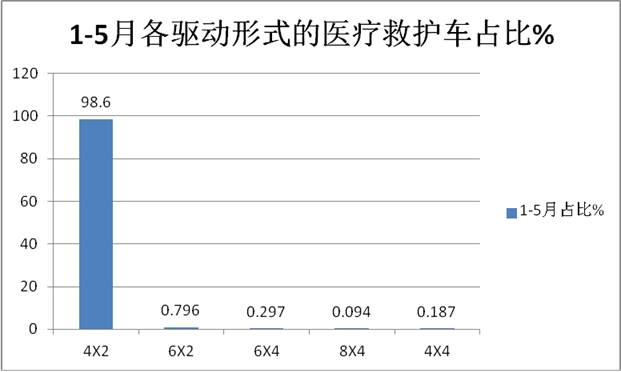 今年1-5月11-12米段醫(yī)療救護(hù)車市場占比分別為2.5%,占比居第三;
