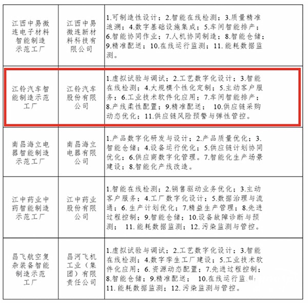 2023年11月9日第一專用車網(wǎng)記者獲悉,近日,國家工業(yè)和信息化部公示了2023年度智能制造示范工廠揭榜單位和優(yōu)秀場景名單。其中,江西共5家企業(yè)入選智能制造示范工廠揭榜單位名單,江鈴汽車股份有限公司榜上有名。這意味著江鈴集團(tuán)在深化智能制造推廣應(yīng)用上再次獲得權(quán)威認(rèn)可,成為國家智能制造領(lǐng)域的“排頭兵”。