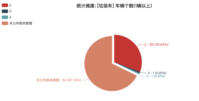 本次公告中的124款垃圾車中,2軸(38輛,占比30.65%)、3軸(1輛,占比0.81%)、4軸(1輛,占比0.81%)、未公布相關數據(84輛,占比67.74%)。![]()
