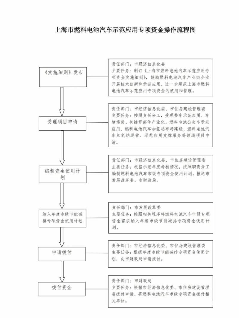市有關部門按照分工對相關區(qū)燃料電池汽車示范應用項目的實施和市專項資金的使用進行跟蹤管理。