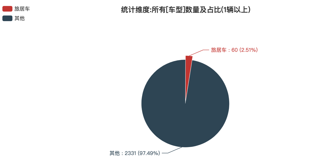 第384批新車產(chǎn)品公示中的2391輛產(chǎn)品中,旅居車60輛,占比2.51%。