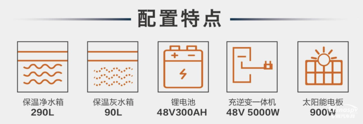依托于車(chē)內(nèi)的中央空調(diào)管控系統(tǒng)與熱交換系統(tǒng)。供熱上,車(chē)內(nèi)首創(chuàng)雙區(qū)熱交換前后雙風(fēng)暖,實(shí)現(xiàn)了主動(dòng)內(nèi)循環(huán),一方面保證了生活區(qū)與設(shè)備區(qū)熱量循環(huán),另一方面水箱內(nèi)置后,即便是環(huán)境溫度達(dá)到零下,水路也能正常進(jìn)行工作。