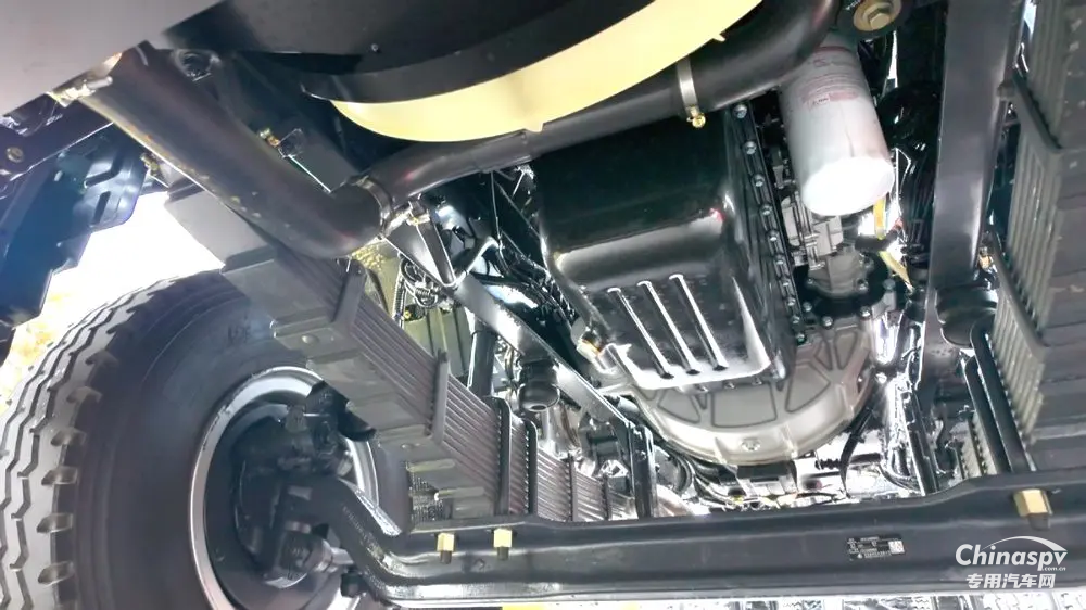 整車搭載采用玉柴S06 270馬力發(fā)動機,搭配大10檔變速箱及速比5.262鑄鋼后橋,整套動力鏈堪稱黃金動力匹配,動力強勁,成熟可靠,起步加速、爬坡過坎毫無壓力。標配電控硅油離合器風扇總成,搭配發(fā)動機ECU精準標定,相比市面上普遍采用的直連風扇,能夠精確控制水溫,使發(fā)動機工作在最佳溫度。不僅節(jié)能降噪,更能實現(xiàn)4%以上的燃油經(jīng)濟性。