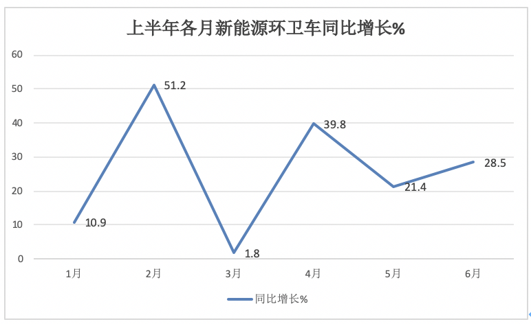 ---今年6月新能源環(huán)衛(wèi)車銷量同比增長28.5%,跑贏今年6月環(huán)衛(wèi)車大盤-21.3%的增速近49.8個(gè)百分點(diǎn);