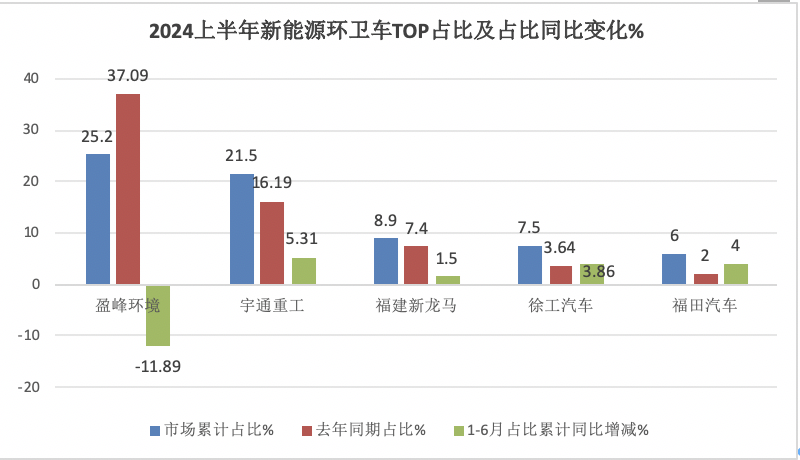 2024上半年新能源環(huán)衛(wèi)車:同比6連增純電動(dòng)領(lǐng)漲領(lǐng)跑;盈峰\宇通\福龍馬居前三