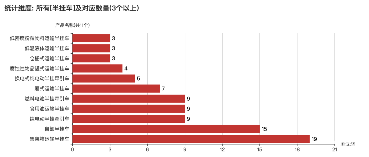 數(shù)量在3臺(tái)以上的半掛車(chē)車(chē)型情況