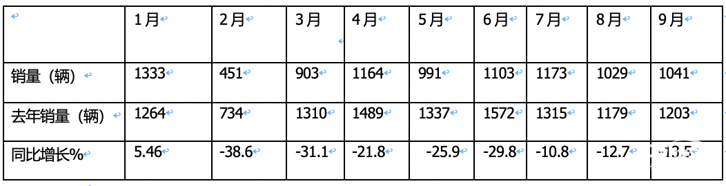 同比下降,主要是今年9月市場(chǎng)大環(huán)境不太景氣,房車需求動(dòng)力不足,加之去年同期銷量基數(shù)較高,因此導(dǎo)致今年9月房車市場(chǎng)同比下降;