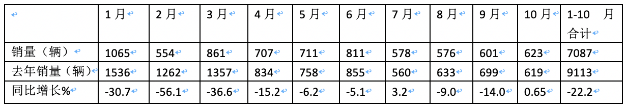 特點一、前10月各月銷量同比2增8降,下降成為“主旋律”