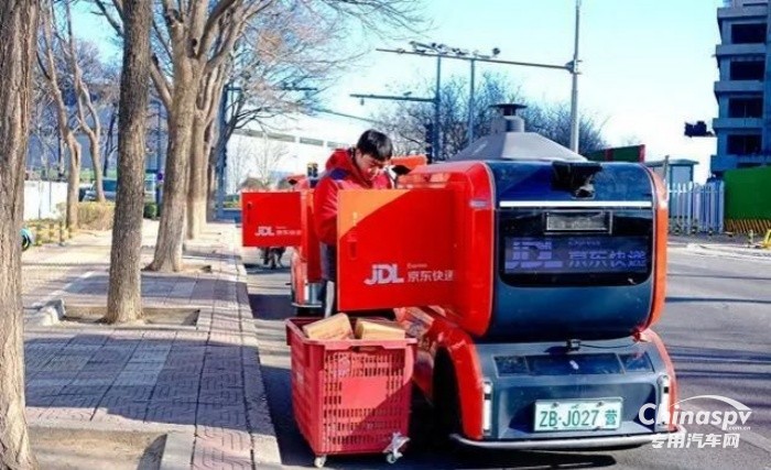 新春佳節(jié),年貨的購買寄遞需求比平日增加了許多,京東物流在春節(jié)期間正常營業(yè),貨物多、快遞員少,無人配送車便派上了大用場。