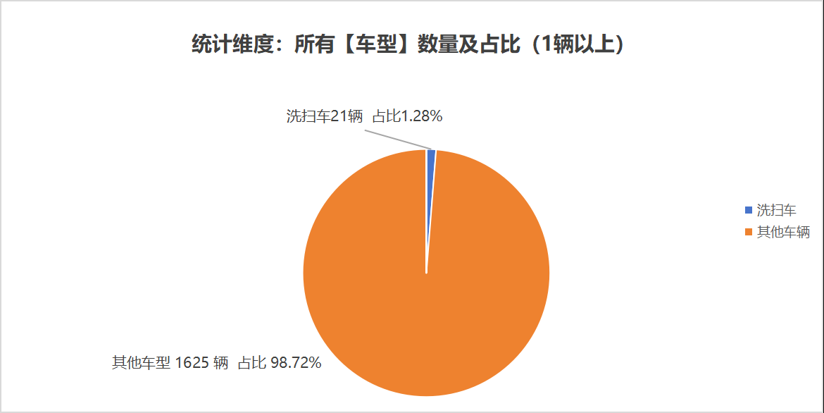 第392批新車產(chǎn)品公示中的1646輛產(chǎn)品中,洗掃車(21輛,占比1.28%)。