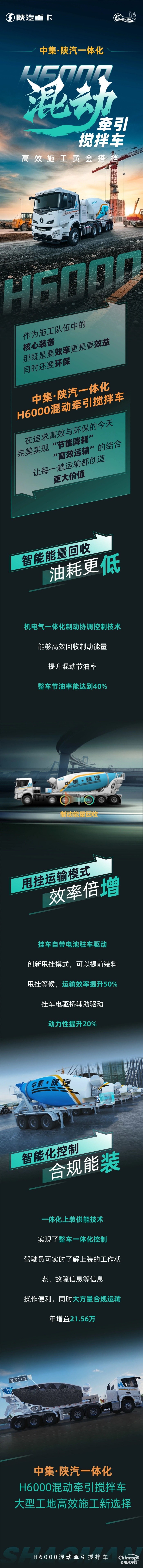 中集·陜汽一體化H6000混動牽引攪拌車,高效施工黃金搭檔!