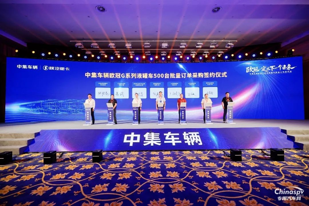 在發(fā)布會(huì)現(xiàn)場(chǎng),“歐冠G”系列液罐車憑借實(shí)測(cè)性能贏得行業(yè)頭部客戶高度認(rèn)可,朱雀營(yíng)銷總公司總裁張傳亮、玄武營(yíng)銷總公司總裁朱偉軍與眾多客戶代表簽約采購(gòu)訂單。