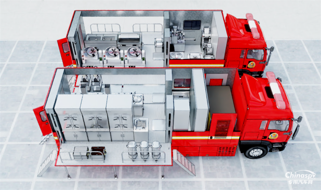 應急保障往往需要餐車能夠迅速抵達各種復雜區(qū)域。森源鴻馬全自動餐車模組基于高性能的二類載貨車底盤打造,具備出色的越野性能與機動性,無論是崎嶇山路、泥濘小道,還是偏遠的野外地區(qū),都能順利通行。車輛還進行了良好的保溫、防潮、防塵設計,符合防火、阻燃和環(huán)保指標要求,可適應全天候展收作業(yè)。此外,通過了海拔 4500 米的操作試驗,在高原等極端環(huán)境下也能穩(wěn)定運行,為一線人員提供可靠的飲食保障。