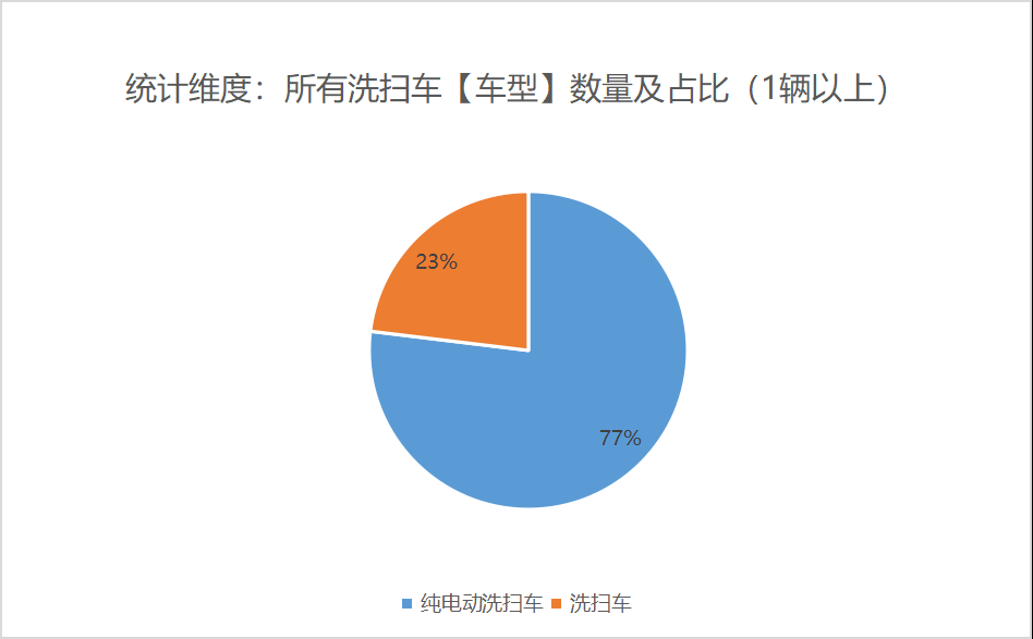 本次公告中的39款洗掃車中,純電動(dòng)洗掃車(30輛,占比77%)、未公布能源情況(9輛,占比23%)。