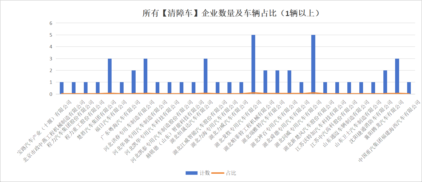 本次公告中的51款清障車的生產(chǎn)企業(yè)共有30家,寶路汽車產(chǎn)業(yè)(十堰)有限公司(1輛)、北京市政中燕工程機械制造有限公司(1輛)、程力汽車集團股份有限公司(1輛)、程力重工股份有限公司(1輛)、楚勝汽車集團有限公司(3輛)、福日汽車有限公司(1輛)、廣東粵海汽車有限公司(2輛)、河北洪春專用車制造有限公司(3輛)、河北華旗專用汽車制造有限公司(1輛)、河北凱華專用汽車科技有限公司(1輛)、河北凱泰專用汽車制造股份有限公司(1輛)、赫銳德(山東)智能科技有限公司(1輛)、湖北恒晟達汽車有限公司(3輛)、湖北江威智能汽車股份有限公司(1輛)、湖北力海專用汽車有限公司(1輛)、湖北力威汽車有限公司(1輛)、湖北龍牧專用汽車有限公司(5輛)、湖北帕菲特工程機械有限公司(2輛)、湖北瑞雅特汽車有限公司(2輛)、湖北神百專用汽車有限公司(2輛)、湖北舜德專用汽車有限公司(1輛)、湖北同威專用汽車有限公司(5輛)、湖北新楚風汽車股份有限公司(1輛)、江蘇沃特加汽車科技有限公司(1輛)、江蘇中汽高科股份有限公司(1輛)、山東通邁車輛制造有限公司(1輛)、山東衛(wèi)士汽車制造有限公司(1輛)、沈陽捷通消防車有限公司(2輛)、襄陽騰龍汽車有限公司(3輛)、中國重汽集團福建海西汽車有限公司(1輛)。