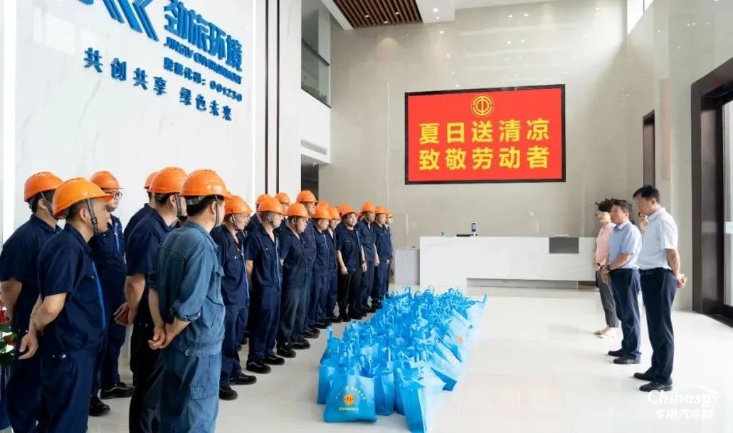 熱浪滾滾,關(guān)懷沁心。8月6日上午,新站高新區(qū)總工會(huì)領(lǐng)導(dǎo)一行來(lái)到勁旅環(huán)境科技股份有限公司,親切慰問(wèn)廠區(qū)一線工人,并送上夏日清涼禮包。