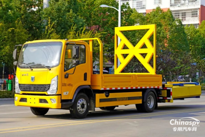 此外,車輛還配備了 LED 矩陣式爆閃燈,可實現(xiàn)單獨向左、向右和禁止通行等多種指示模式,在復雜施工環(huán)境中能有效警示過往車輛,提高可見性,降低事故風險。高性能液壓系統(tǒng)則確保車輛可實現(xiàn)快速舉升和降落,操作安全穩(wěn)定,為施工中的設(shè)備裝卸與作業(yè)提供便利。而且,防撞緩沖模塊擁有國家權(quán)威檢測報告,其質(zhì)量與安全性得到專業(yè)認可。