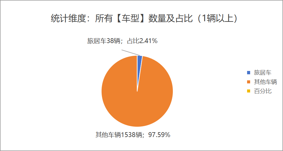 第397批新車產(chǎn)品公示中的1576輛產(chǎn)品中,旅居車(38輛,占比2.41%).