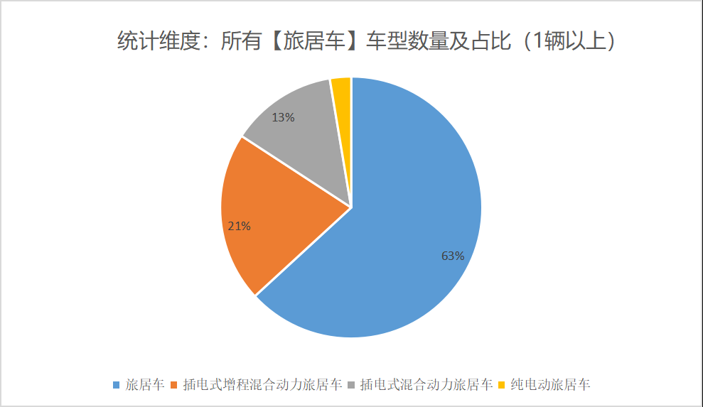 本次公告中的38款旅居車的車型共有4種,旅居車(24輛)、插電式混合動(dòng)力旅居車(5輛)、插電式增程混合動(dòng)力旅居車(8輛)、純電動(dòng)旅居車(1輛)。