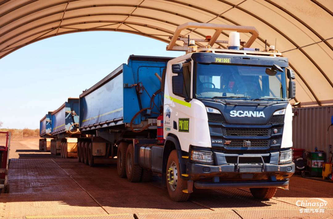 福蒂斯丘與斯堪尼亞(Scania)的合作,是 OEM 深度整合自動(dòng)化技術(shù)的典范。2024 年 10 月,雙方達(dá)成協(xié)議,聯(lián)合開發(fā)完全集成的自動(dòng)駕駛公路列車解決方案,目標(biāo)直指礦山 “作業(yè)范圍縮小” 與 “運(yùn)營(yíng)效率提升” 的雙重訴求。斯堪尼亞澳大利亞公司董事總經(jīng)理曼弗雷德?施特賴特直言,合作的核心優(yōu)勢(shì)在于 “斯堪尼亞在礦業(yè)卡車領(lǐng)域的經(jīng)驗(yàn)與福蒂斯丘自動(dòng)駕駛技術(shù)的深度融合”。目前,這一方案已在福蒂斯丘位于克里斯馬斯溪的鐵礦石礦區(qū)進(jìn)入測(cè)試驗(yàn)證階段,其技術(shù)核心在于將斯堪尼亞 R770 牽引車平臺(tái)的車載自動(dòng)化硬件,與福蒂斯丘自主研發(fā)的車隊(duì)管理系統(tǒng)(FMS)無縫對(duì)接。