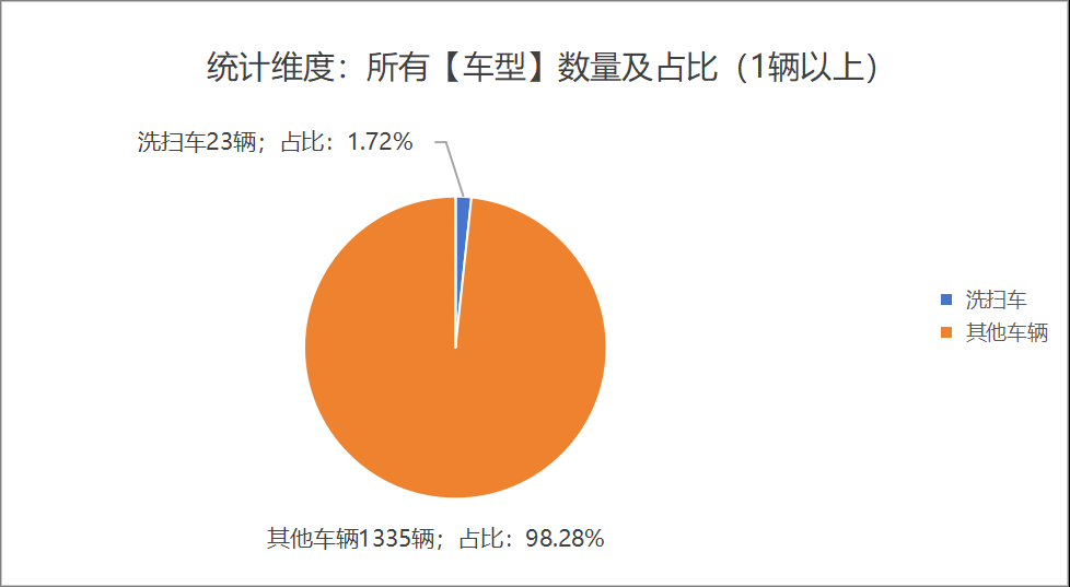 本次公告中的23款洗掃車的車型共有2種,純電動(dòng)洗掃車(19輛)、未公布類型洗掃車(4輛)。