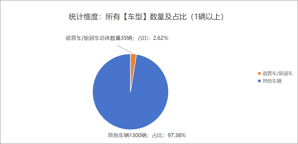 第398批新車產(chǎn)品公示中的1335輛產(chǎn)品中,宿營車/旅居車總體數(shù)量(35輛,占比2.41%)。
