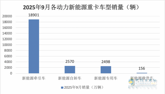 上圖表顯示,按技術(shù)路線劃分,在2025年9月各動力新能源自卸車銷量中: