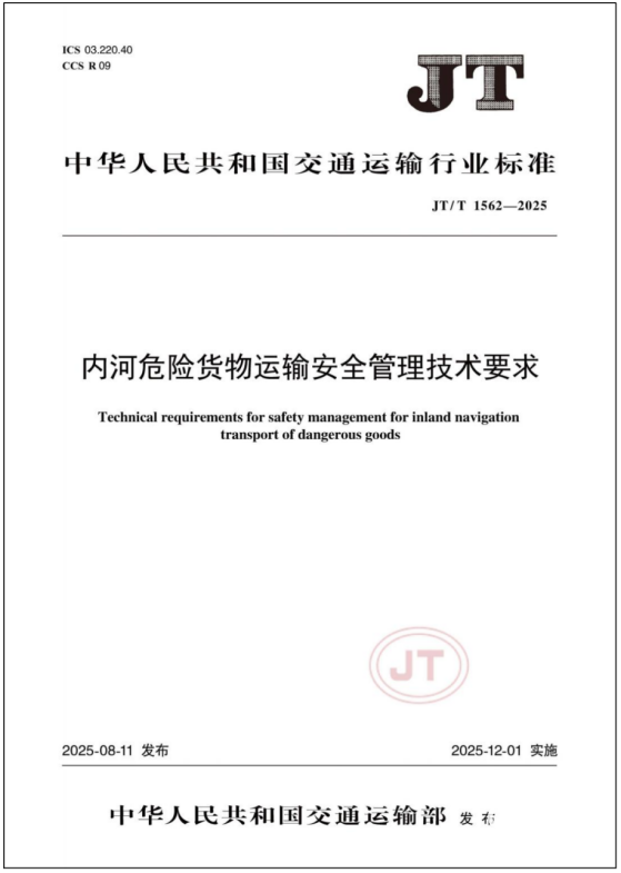 為進一步加強內(nèi)河危險貨物運輸安全管理,《內(nèi)河危險貨物運輸安全管理技術要求》(JT/T 1562-2025)(以下簡稱《標準》)將于2025年12月1日正式實施。