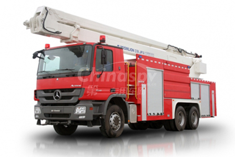 ZLJ5303JXFJP32舉高噴射消防車采用德國原裝進口奔馳底盤,加裝美國大力公司PSP1500消防泵、美國AKRON公司3578消防炮、液壓系統(tǒng)、臂架系統(tǒng)、氣路系統(tǒng)、電器系統(tǒng)等部件改裝而成。