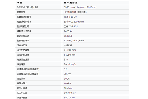 ZLJ5070THQHE3型護(hù)欄清洗車采用安徽江淮汽車股份有限公司生產(chǎn)的HFC1071KT二類汽車底盤改裝,排放達(dá)到歐Ⅲ標(biāo)準(zhǔn),副發(fā)動機(jī)采用江鈴JX493Q1柴油機(jī),副發(fā)動機(jī)經(jīng)分動箱驅(qū)動各工作裝置。清洗護(hù)欄時,可采用噴嘴向護(hù)欄進(jìn)行低壓(或高壓)噴水、四個馬達(dá)帶著滾刷旋轉(zhuǎn)并夾著護(hù)欄對護(hù)欄進(jìn)行清洗作業(yè);路面沖洗時,駕駛室前端噴嘴向路面左、右兩側(cè)噴水。整機(jī)技術(shù)水平處于國內(nèi)護(hù)欄清洗車領(lǐng)先地位。