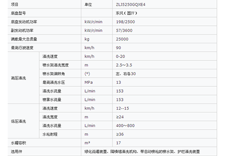 ZLJ5250GQXE4型清洗車是我司開發(fā)的一種主要適用于公路用戶使用的大型多功能清洗車,可選配多種清洗作業(yè)功能和輔助作業(yè)功能,該清洗車水箱容積大,具有副發(fā)動機驅(qū)動的獨立的高壓水路系統(tǒng)、底盤驅(qū)動的低壓水路系統(tǒng)。高壓清洗高效節(jié)水,清洗距離長,適應(yīng)公路加水距離遠的特點;護欄清洗刷適用于清洗公路護欄;低壓水路的綠化澆灌裝置,適用于公路綠化帶澆灌時需低速行駛的工況。