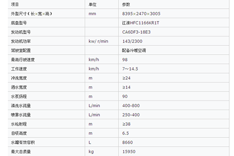 ZLJ5163GQXHE3型清洗車采用配有CA6DF3-18E3型發(fā)動機的江淮HFC1166KR1T汽車二類底盤改裝,功率強勁,排放達到國Ⅲ標(biāo)準(zhǔn)。