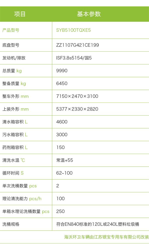 專業(yè)的海沃垃圾桶清洗車配備高壓、高溫的密閉清洗系統。該系統包括兩個獨立的清水箱和污水箱、兩個燃油熱水器、高壓水泵以及安裝在密閉不銹鋼清洗倉中的高壓噴水系統。